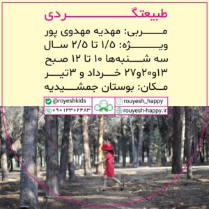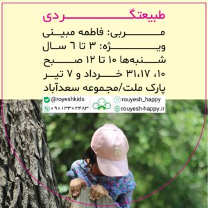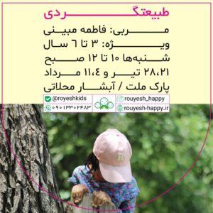 جامعه گردشگری رویش، با هدف ایجاد نشاط عمومی برای کودکان و خانواده هایشان از سال ۱۳۹۵، اقدام به برگزاری دوره های طبیعتگردی کرده است. شناسایی بسترهای طبیعت شهری، بهکارگیری مربیان متعهد و کارآزموده و ایجاد محیط صمیمی برای حضور مادران و فرزندانشان، اسباب رشد و توسعه فعالیتهای طبیعتگردی رویش شده است. این فرایند منجر به برگزاری توسعه طبیعتگردی در رده های سنی ۱-۲ و ۲-۳ و ۳-۵، نوجوان و بزرگسال گردیده است.